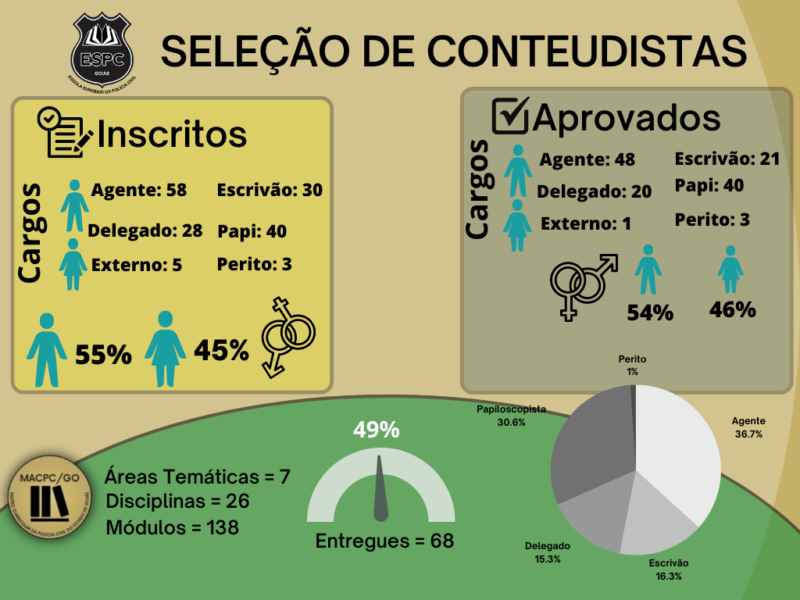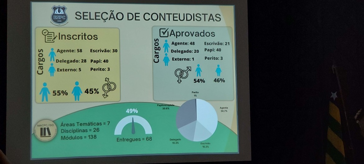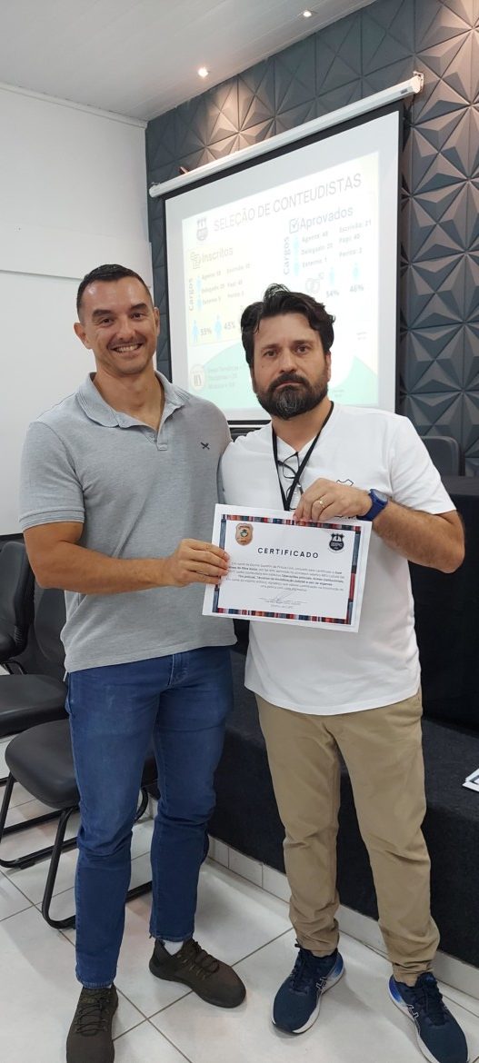 Na oportunidade o diretor da ESPC, delegado Daniel Adorni, agradeceu o empenho de cada um dos participantes e parabenizou o número de apostilas de grande qualidade que foram entregues. Foi realizada uma apresentação dos números de conteudistas que participaram por sexo e por cargo e como esse processo democratizado e as seleções dos conteúdos obtiveram unicamente o critério de meritocracia para a seleção das melhores apostilas. O diretor aproveitou sua fala para entregar uma singela homenagem em reconhecimento ao trabalho daqueles que se destacaram no processo com as maiores notas avaliadas pela comissão de seleção. Posteriormente, todos receberam um certificado pela participação, com agradecimento da ESPC pelo conteúdo entregue.