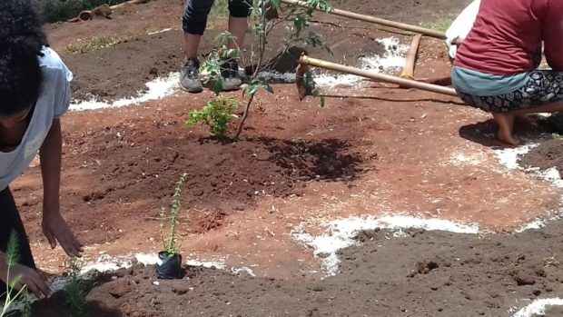 O Programa Investigador Mirim – PIM, realizou na manhã do último sábado (27/01/18) o plantio de mudas para implantação de horta e pomar comunitários nas dependências da ESPC.