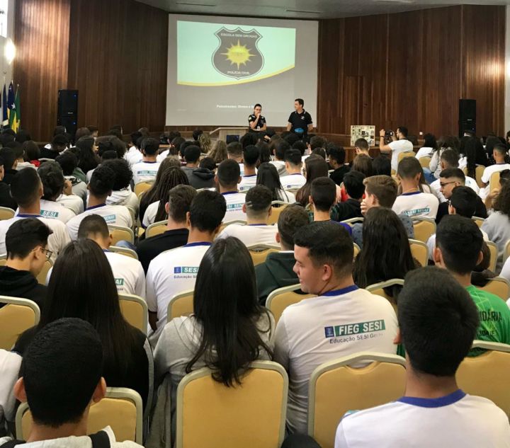 A Polícia Civil, através do Programa Escola Sem Drogas (PESD), marcou presença nesta quarta-feira (16) no Colégio Sesi, no Bairro Jundiaí, em Anápolis. Os palestrantes Tarciana Albuquerque, Suzy Ribeiro e Divino Inácio abordaram o tema “Prevenção ao Uso de Drogas”, nos períodos matutino e vespertino, para alunos dos ensinos Médio e Fundamental, do 6° ao 3° ano.